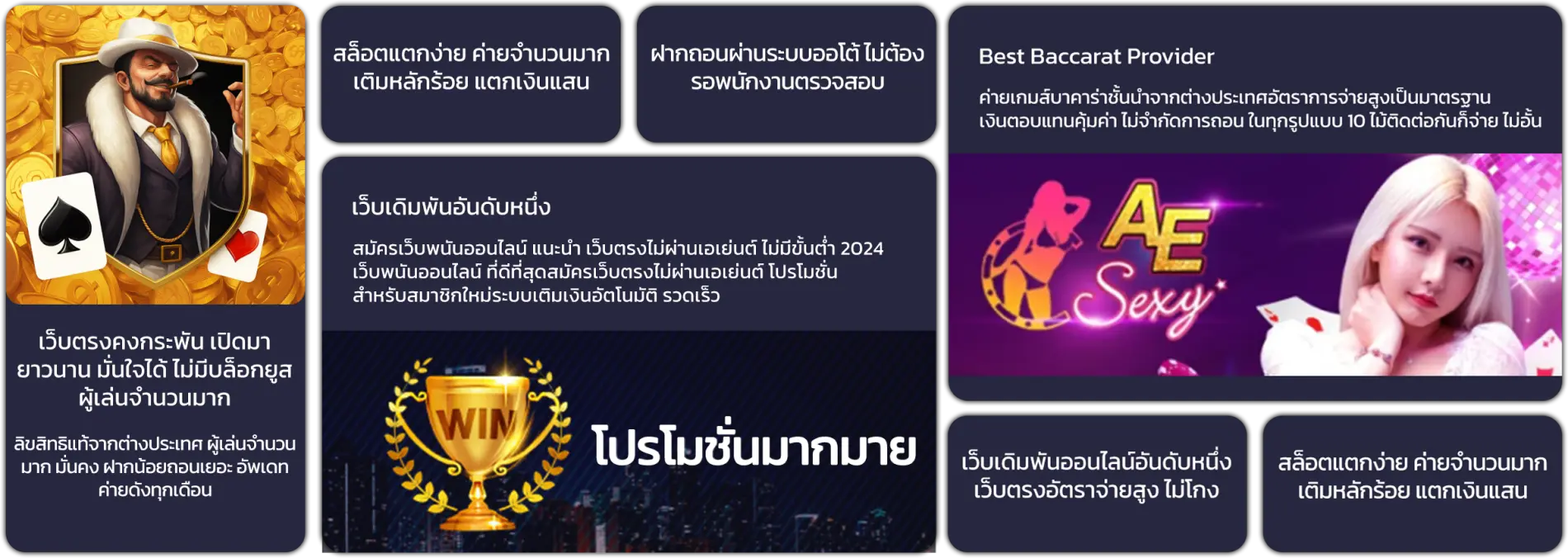 สมัคร TGA168 ถือเป็นทางเลือกที่ตอบโจทย์สำหรับผู้ที่กำลังมองหาเว็บไซต์พนันออนไลน์ที่ครบวงจรและน่าเชื่อถือ ด้วยแนวคิดในการเป็นศูนย์รวมความบันเทิงด้านการเดิมพันออนไลน์ไว้ในที่เดียว ทำให้ TGA 168 ได้รับความนิยมจากนักพนันออนไลน์ทั้งมือใหม่และมืออาชีพ เว็บไซต์มุ่งเน้นการให้บริการที่มีคุณภาพ เพื่อมอบประสบการณ์การเดิมพันที่สนุก คุ้มค่า และปลอดภัยสูงสุดแก่สมาชิกทุกคนTGA168ได้คัดสรรเกมพนันออนไลน์จากค่ายดังระดับโลกมาให้เลือกเล่นอย่างหลากหลาย ครอบคลุมทุกประเภท ไม่ว่าจะเป็นสล็อตออนไลน์ที่มีกราฟิกสวยงาม โบนัสแตกง่าย คาสิโนออนไลน์สดที่ให้บรรยากาศสมจริงเหมือนเล่นในคาสิโนจริง เกมเดิมพันกีฬาออนไลน์ครบทุกลีกดัง หวยออนไลน์ และเกมไพ่ยอดนิยม เช่น บาคาร่า เสือมังกร และป๊อกเด้ง ทุกเกมรองรับการใช้งานทั้งบนมือถือและคอมพิวเตอร์ ช่วยให้สมาชิกสามารถเข้าเล่นได้ทุกที่ทุกเวลาอย่างสะดวกสบาย